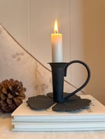 This beautiful antique black candle holder features a pretty petal base and is perfect for adding country charm to your homes!