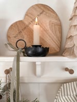 Our beautiful new Chamberstick comes in a beautiful antique charcoal finish with a pretty scalloped rim! We love it paired with our short dinner candles!