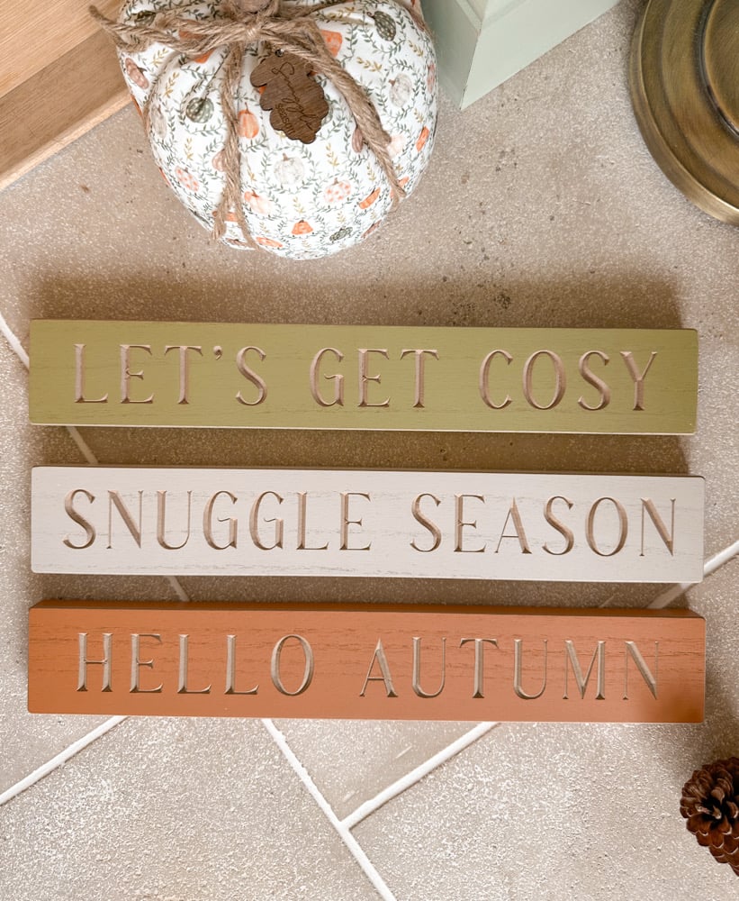 These beautiful wooden blocks come in 3 different colour ways each with a different seasonal quote.