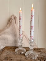 These beautiful candle feature a pretty pink bow design and come as a set of 2 - we have popped them in our cut glass candle holders here!