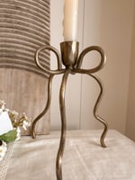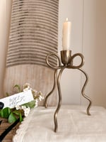 This beautiful brass bow candle holder is perfect with our short dinner candles
