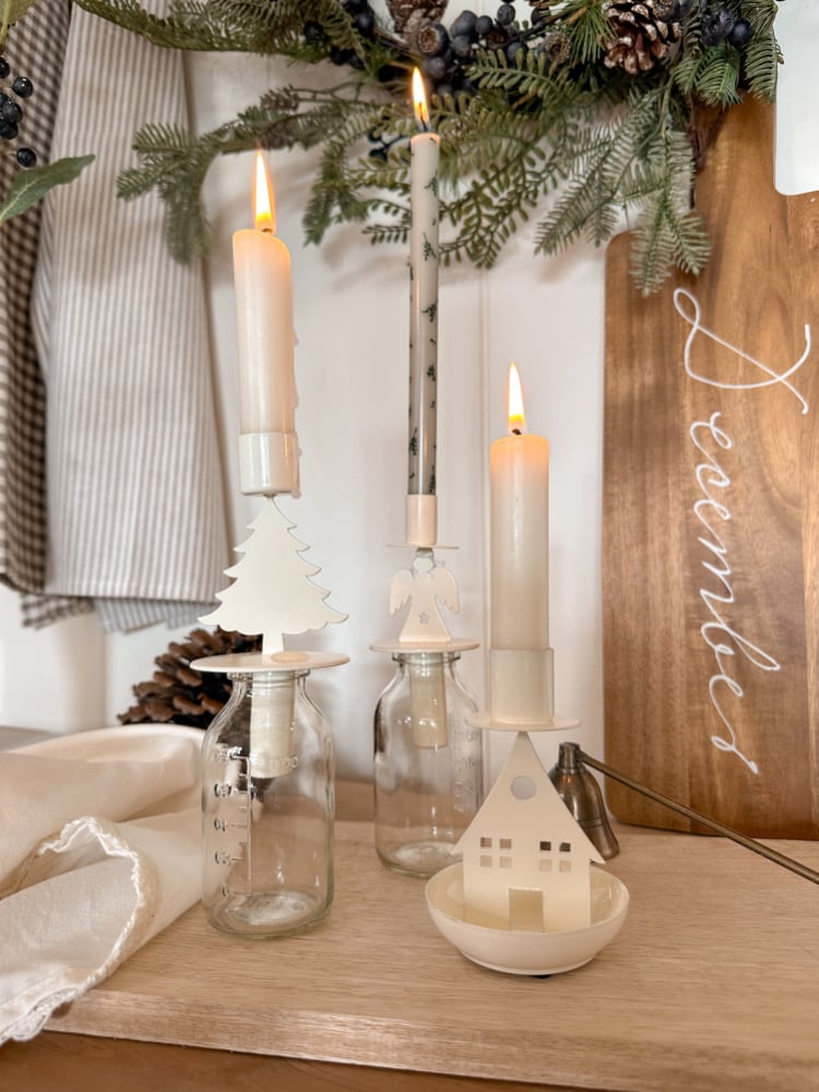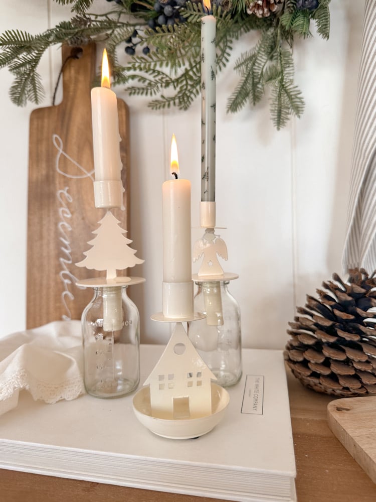 Cream Christmas Candle Holders ( set or singles )