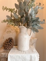 This pretty bouquet is made up of 3 bunches which are shown here in our winter. scene jug or tall adelaide jug! The beautiful frosted effect makes it twinkle in the sunlight or candle light giving it a beautiful festive feel.