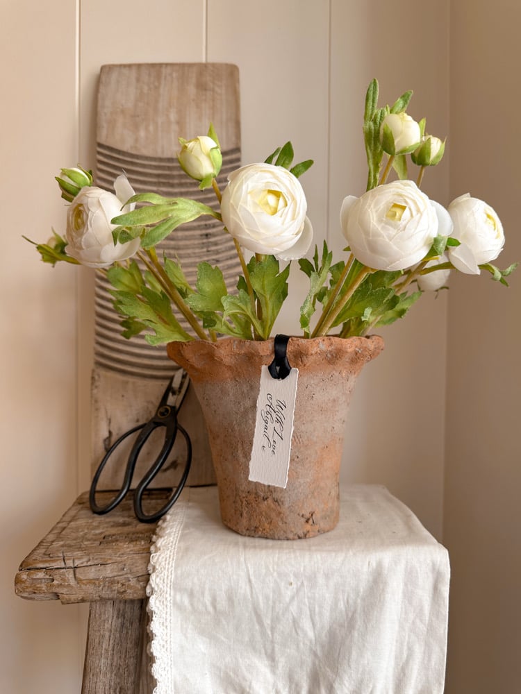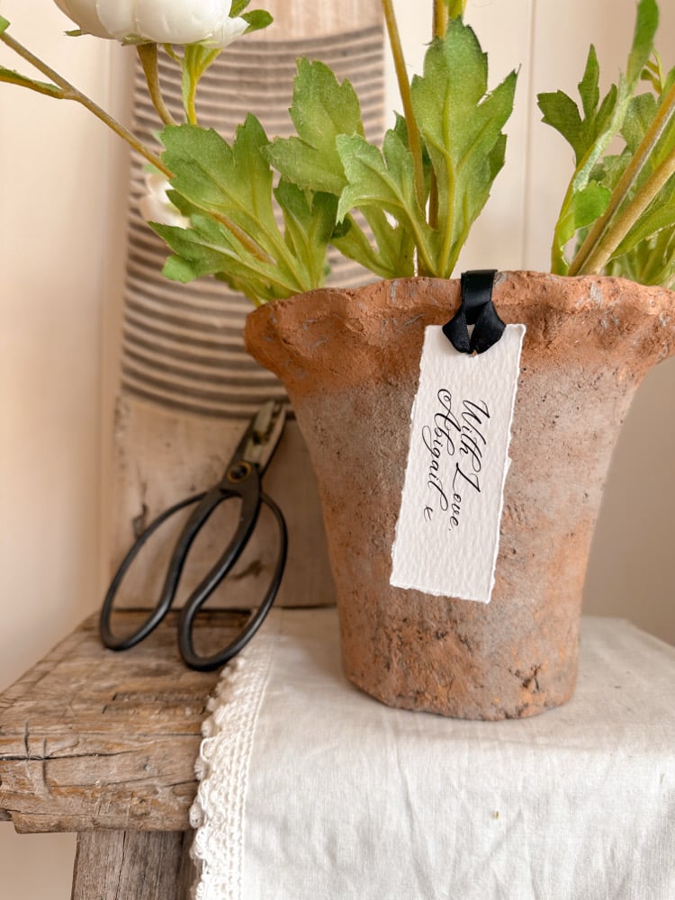This beautiful rustic pot features a frilly rim and is perfect for displaying alone, or adding faux or real blooms!