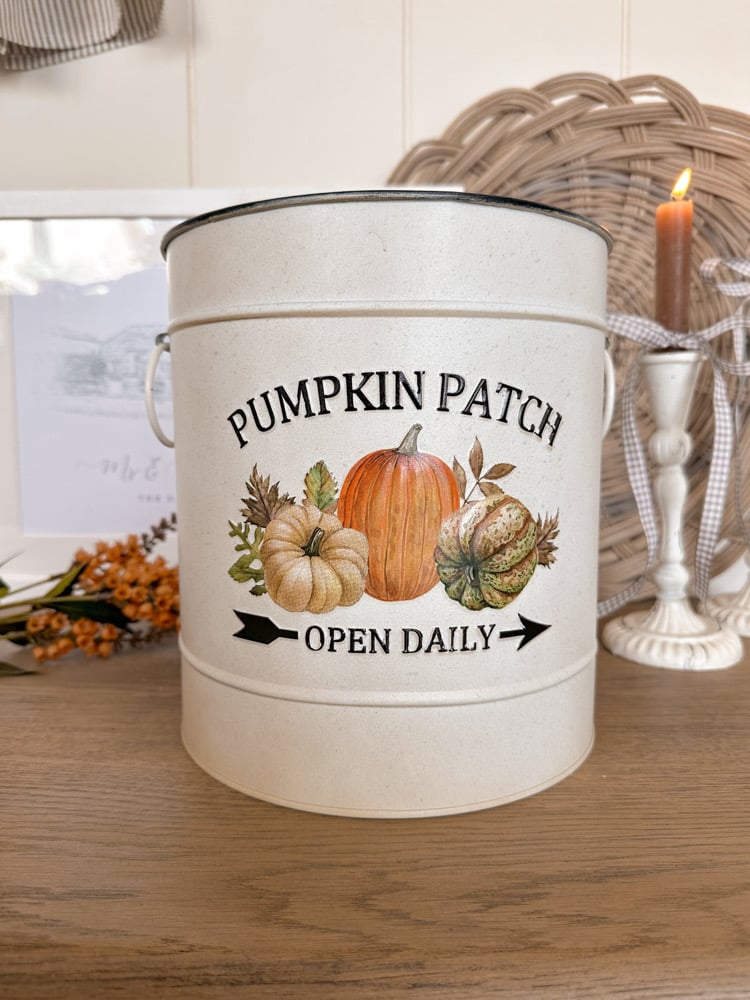 This adorable rustic zinc bucket is the perfect addition for adding a farmyard touch to your homes. We love it styled alone, filled with pumpkins or flowers!