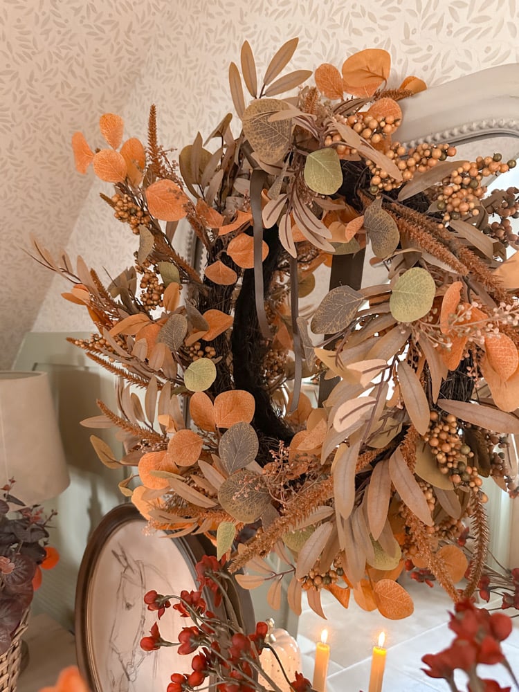 This beautiful wreath is full of burnt orange foliage and berries on a twig backing. Perfect for adding a classic seasonal touch to your homes!