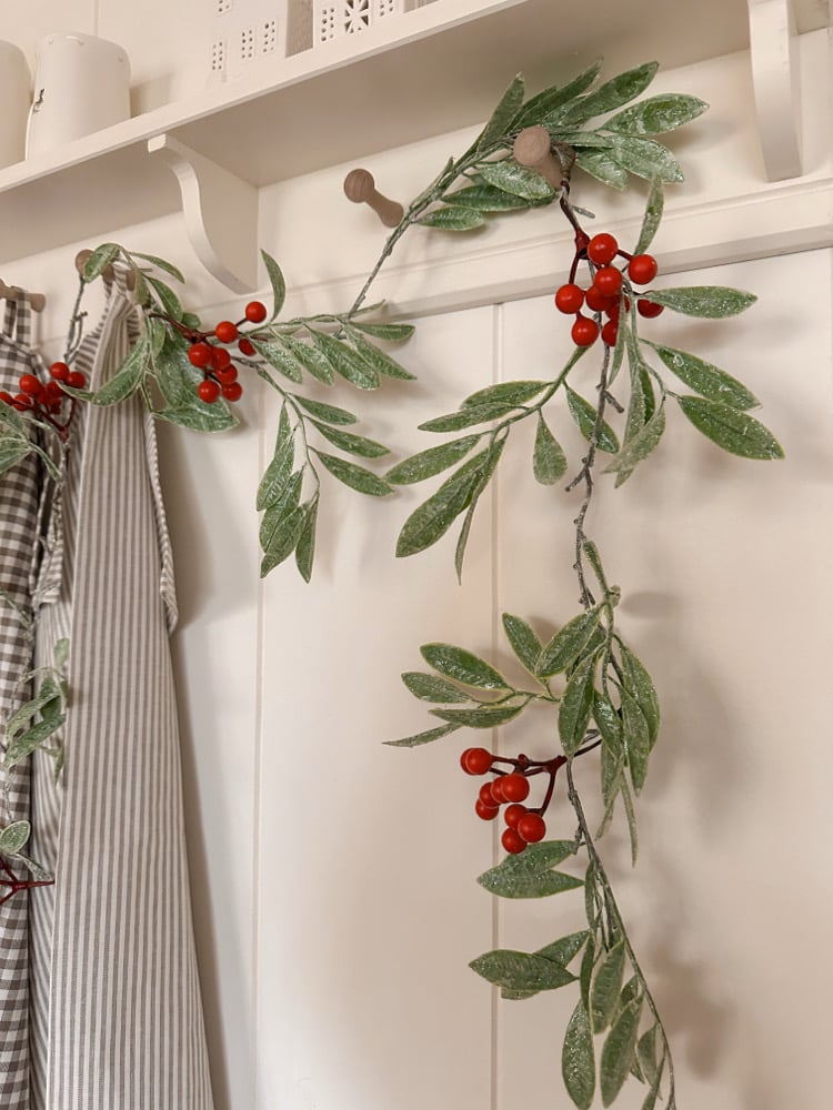 This beautiful garland has beautiful pale green frosted leaves finished with seasonal red berries!