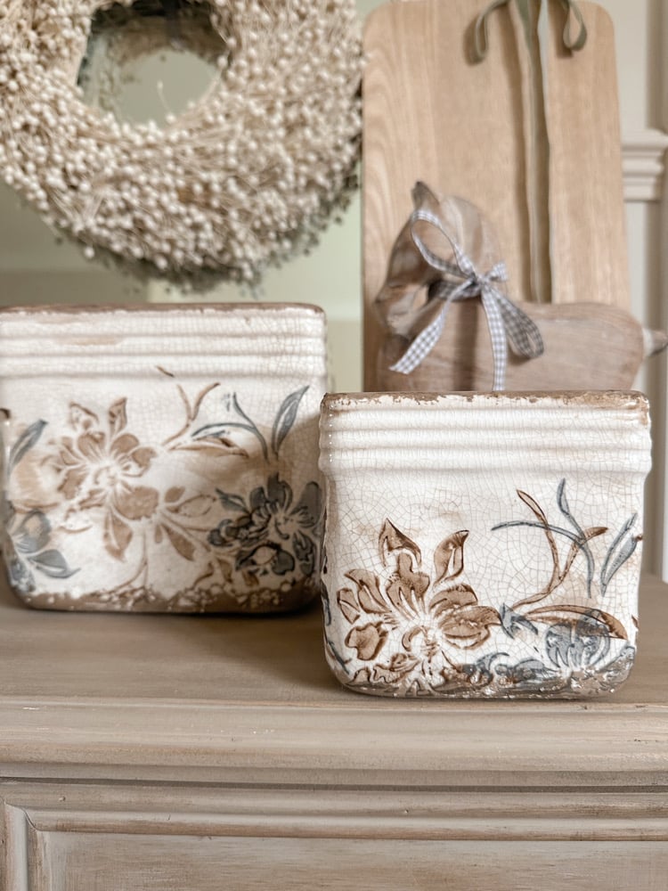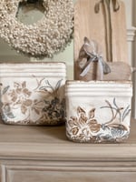 This beautiful collecion features beautiful vintage inspired country ceramics with a beautiful neutral & pale blue floral print.