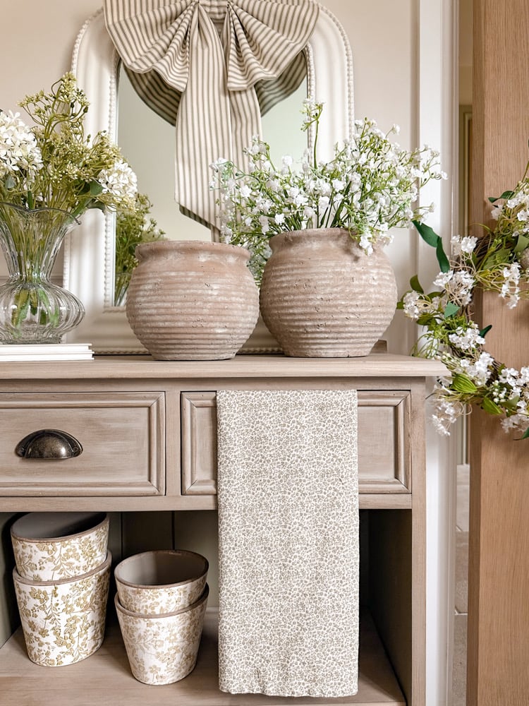 These beautiful terracotta pots are perfect for adding classic country charm to your homes. They come in 2 sizes and we have styled the larger one here with our white ditsy stems.