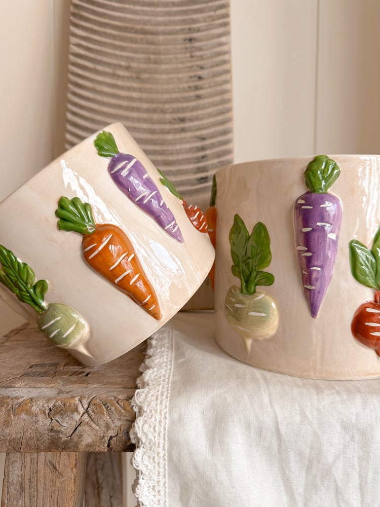 These beautiful pots feature beautiful 3D vegetables and come in 2 sizes - perfect with the matching vases