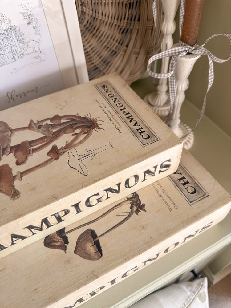 These beautiful wooden storage books have a beautiful toadstool autumnal print on each one - perfect for popping on display and also popping your bits & bobs in.